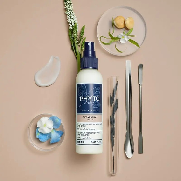 اسپری ترمیم کننده فیتو از الیاف در برابر شکستگی در هنگام خشک شدن تا دمای 230 درجه سانتیگراد محافظت می کندخوره را ترمیم و صاف می کند. .محافظ مو در برابر حرارت .تغذیه کننده تار های مو .محافظت کننده تار مو در برابر خشکی مو و مو خوره