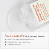 با ۱۵% نیاسینامید، به بهبود منافذ بزرگ و مراقبت از رنگ و بافت پوست کمک میکند. این ترکیب شامل عصارههای خاص و آنتیاکسیدانهایی است که به روشن شدن پوست، بهبود چین و چروک، رطوبترسانی و آرامش پوست کمک میکند. سرم سبک، غیرچسبنده و با جذب سریع به پوست و بسرعت سایز منافذ را کاهش میدهد