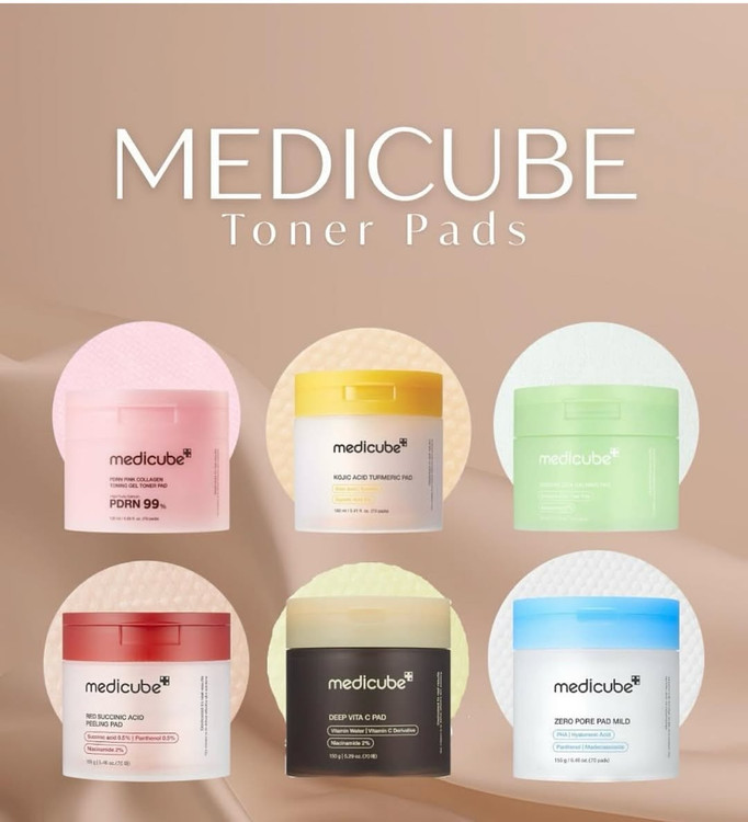 پدتونر PDRN صورتی جوانساز، پدتونر آبی رنگ برای پوست آکنه دار و چرب، پدتونر زرد رنگ برای پوست لک دار، پد تونر قرمز حاوی نیاسینامید برای منافذ باز، پد تونر سبز برای التیام پوست حساس، پد تونر قهوهای حاوی گلوتاتیون برای لک و جوانسازی.