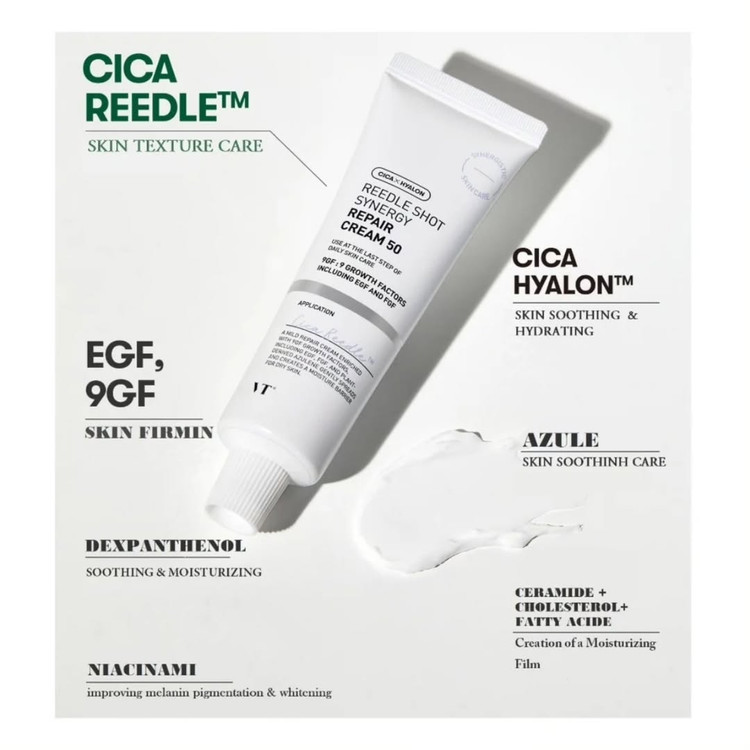 کرم ترمیم کننده ریدل شات دوز ۵۰ حاوی فاکتورهای رشد 9GF از جمله EGF و FGF تسکین دهنده مرطوب کننده روشن کردن کدری پوست کاهش خطوط ریز و چین و چروک ترمیم پوست آسیب دیده و جای زخم و اسکار و جوش بهبود بافت،کشسانی و استحکام پوست حاوی عصاره سیکا حاوی سراماید برای محافظت از پوست آسیب دیده نرم کننده،رفع خشکی و احساس کشیدگی پوست حاوی پانتنول برای بازسازی ،تسکین،کاهش قرمزی و هیدراته شدن محافظت از سد دفاعی پوست مناسب انواع پوست بخصوص حساس و مستعد آکنه در آخرین مرحله مراقبت روزانه از پوست استفاده کنید