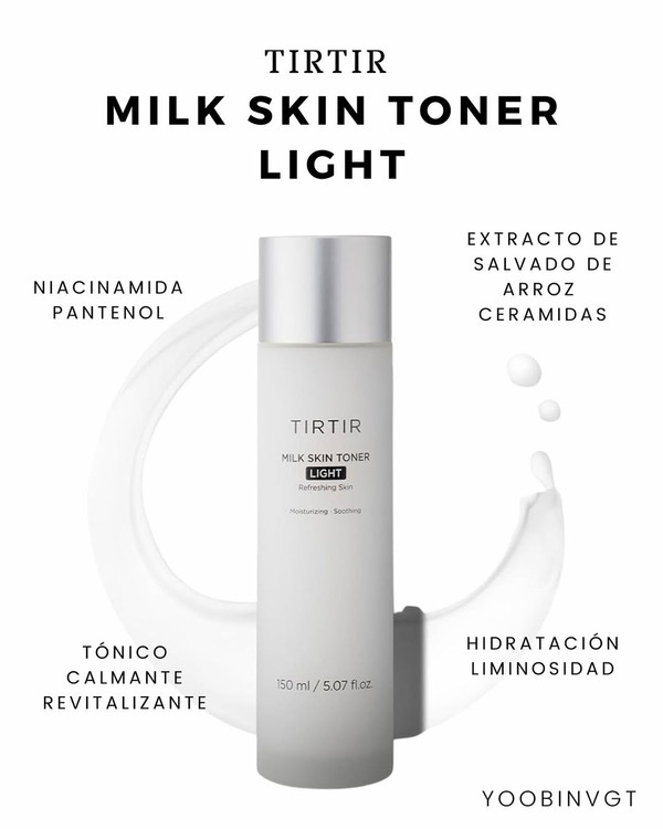 تونر میلک تیرتیر TIRTIR Milk Toner ویژگی های محصول: • حاوی دو نوع پپتاید برای جوانسازی و جلوگیری از ایجاد چین و چروک • حاوی عصاره های گیاهی از جمله سنتلا آسیاتیکا، برگ زیتون، کنگر فرنگی و جو دوسر • قابل استفاده در روتین روز و شب برای پوست های چرب، مختلط و مستعد آکنه و جوش • آبرسانی و رطوبت رسانی بالا به پوست و هیدراته نگهداشتن آن با هیالورونیک اسید • کاهش دهنده قرمزی، تحریکات و التهابات پوست با ترکیب عصاره بابونه • حاوی سرامیدها برای ایجاد لایه ای حفاظتی از بریر پوست • حاوی عصاره برنج با خواص روسن شدن و تغذیه پوست • دارای بافت شیری و فرمولاسیون سبک و جذب سریع • افزایش دهنده خاصیت ارتجاعی و انعطاف پوست • تقویت کننده سد دفاعی و رطوبتی پوست